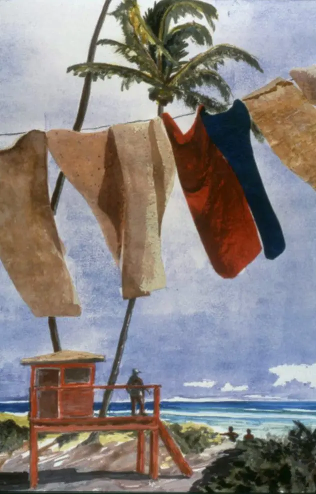 A Lifeguard Dries His Towels